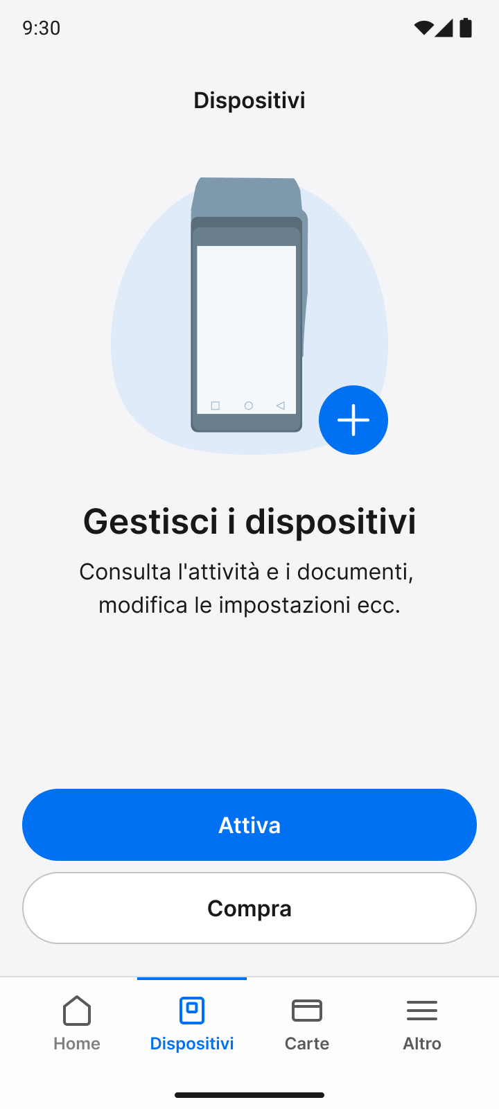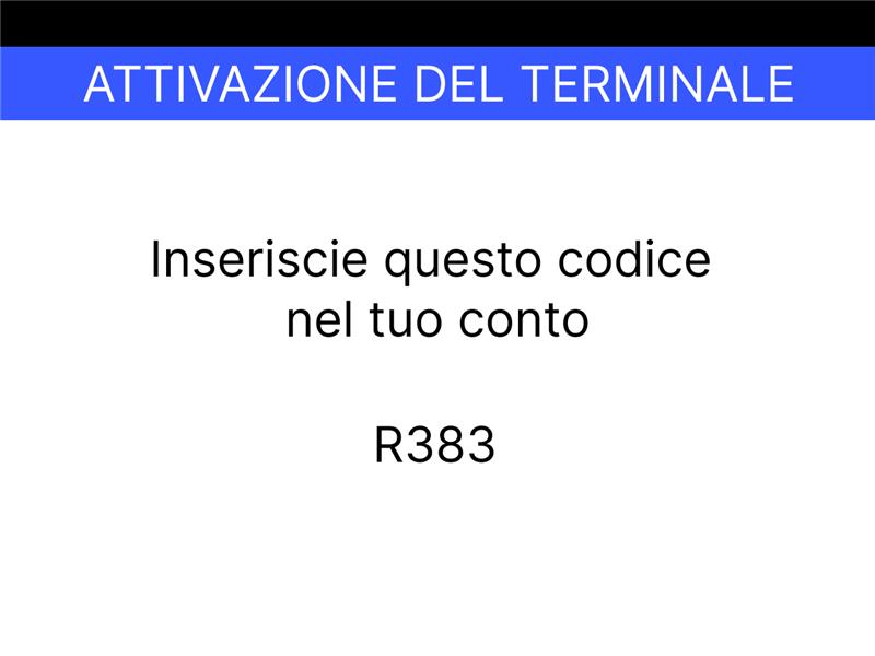 Apri l'app myPOS → clicca su Dispositivi → tocca Attiva → seleziona Terminale → scansiona il codice QR
